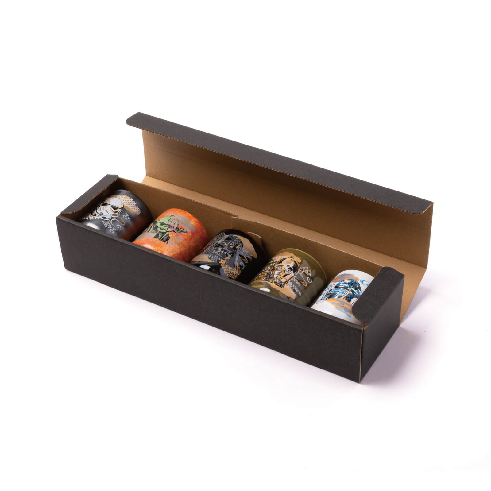 皿立て付きで、使っても飾ってもお楽しみいただける小皿は、ダース・ベイダーやヨーダ、R2-D2、グローグーなどのキャラクターが、伝統模様やモチーフと描かれるとともに、和食器ならではの繊細な風合いがキャラクターたちの存在感を一層引き立てます。
